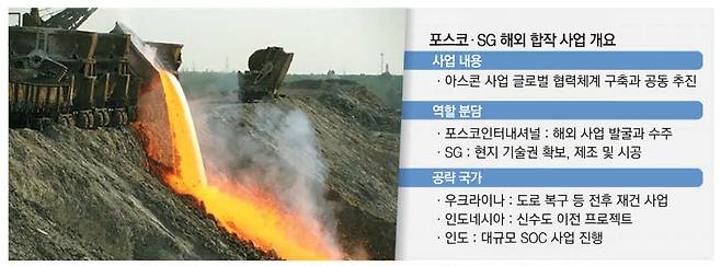 최근 우크라이나에서 4조원대 철강 슬래그 무상 공급 계약을 체결한 중견기업 에스지이(SG)와 손잡고 해외 아스팔트콘크리트(아스콘) 사업을 공동 추진한다.