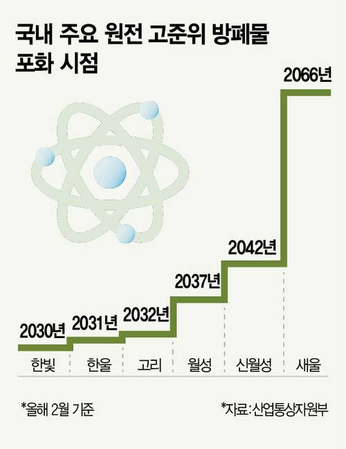 지금은 미봉책으로 사용후핵연료를 원전 내 임시저장시설에 뒀는데, 2030년부터는 한빛원전을 시작으로 순차적으로 포화 상태를 맞는다. 향후 원전 출력을 줄이거나 운영을 아예 중단하는 처지에 내몰릴 수도 있다. 업계 관계자는 “고준위방폐장은 당장 건설을 시작해도 완공까지 30년 넘게 소요되는 만큼 원전 수출뿐 아니라 국내 전력 수급에도 악영향을 미칠 수밖에 없다. 하루빨리 결정해야 할 시급한 과제”라고 전했다.