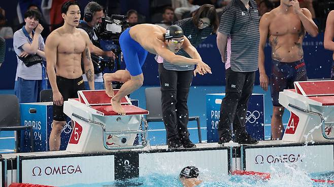 ▲ 2024 파리올림픽 수영 남자 800m 계영 예선전 힘차게 출발하는 마지막 주자 김우민