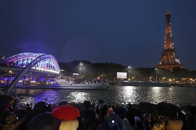 | ▲ 2024 파리 올림픽 개회식이 열린 26일(현지시간) 프랑스 파리 센강에서 프랑스 선수단을 태운 보트가 트로카데로 광장을 향해 수상 행진을 하고 있다. 2024.7.27 |