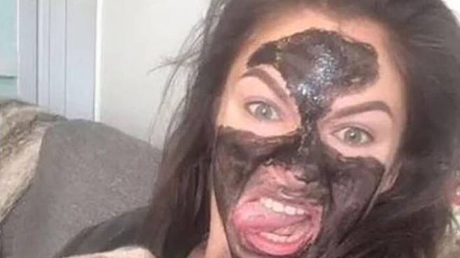 ▲ 자기 얼굴에 검은색 팩을 칠한 채 혀를 내미는 포즈를 취한 에이미 윌슨 하디