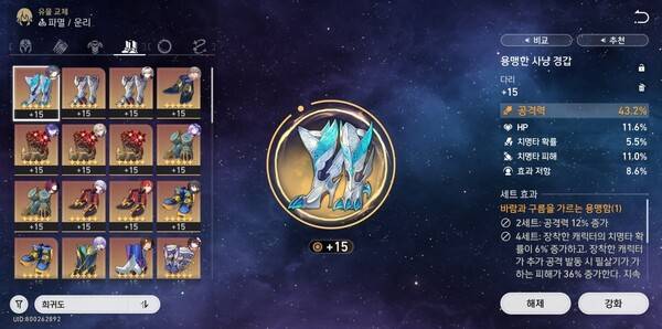 호요버스는 붕괴 스타레일의 업데이트를 거듭할수록 캐릭터의 세팅을 고정적으로 유도하고 있다. 운리의 경우 고민 없이 '바람과 구름을 가르는 용맹함 4세트'와 '질주하는 늑대의 도람 왕조'를 사용하면 된다.