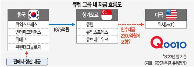 큐텐 그룹이 위메프를 비롯한 국내 계열사와 자회사에서 본사 소재지인 싱가포르로 유출한 돈이 1700억원에 육박하는 것으로 확인됐다. 정산 지연으로 ‘티메프 사태’를 촉발한 상품 판매 대금도 이렇게 새어 나갔다는 의혹이 짙다. 구영배 큐텐 대표가 적극적으로 추진한 미국 이커머스 기업 ‘위시’ 인수 자금으로 흘러들어갔을 가능성이 크다. 느슨한 현행법 탓에 큐텐 측은 막대한 자금을 국내에서 해외로 가져가는 동안 아무 제지를 받지 않았다.