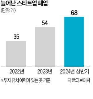 벤처투자 시장이 얼어붙으면서 스타트업 폐업이 급증하고 있다. 31일 벤처투자 플랫폼 더브이씨에 따르면 투자 유치 이력이 있는 스타트업 중 지난 상반기에 폐업한 회사는 68곳이다. 2022년 상반기 35곳, 2023년 상반기 54곳보다 늘었다. 벤처캐피털(VC)업계 관계자는 “경쟁력이 떨어진 회사는 물론 건실하다고 평가받던 곳까지 파산하는 사례가 늘어나고 있다”고 했다.