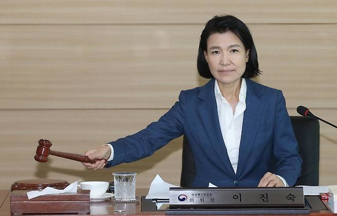 이진숙 방통위원장은 이날 임명되고 10여시간만에 대통령 추천 2인 위원만 참여한 전체회의에서 13명의 공영방송 이사진 선임안을 속전속결로 처리했다.