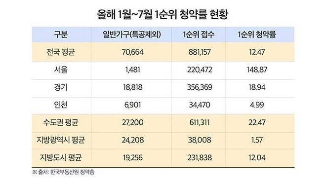 1∼7월 서울 1순위 청약 경쟁률 149대 1