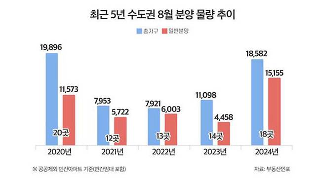 한편 8월 수도권 분양 물량은 18개 단지, 1만 8천582가구(일반분양 1만 5천155가구)로 집계됐습니다.