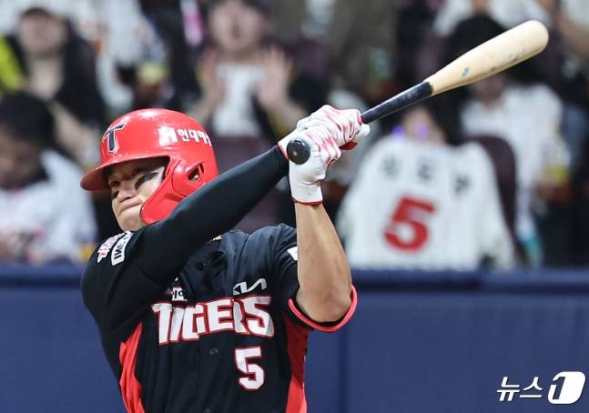 2회 우익수 뜬공으로 물러난 김도영은 4회 세 번째 타석에서 안타와 타점을 추가했다. 2사 3루 볼카운트 1-0에서 두산 선발 시라카와 케이의 2구째 147km/h 패스트볼을 휘둘러 중견수 앞 1타점 적시타로 연결했다. 7회엔 최승용 상대로 좌중간 2루타를 터트리며 멀티 히트 경기를 펼쳤다.
