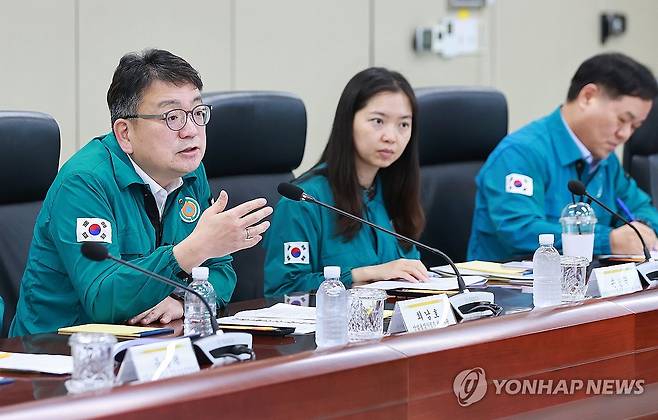 (서울=연합뉴스) 최남호 산업통상자원부 2차관(왼쪽 첫 번째)이 1일 서울 서초구 한국전력공사 아트센터 회의실에서 열린 여름철 전력수급 현장점검 회의에서 발언하고 있다. 2024.8.1 [산업통상자원부 제공. 재판매 및 DB 금지]