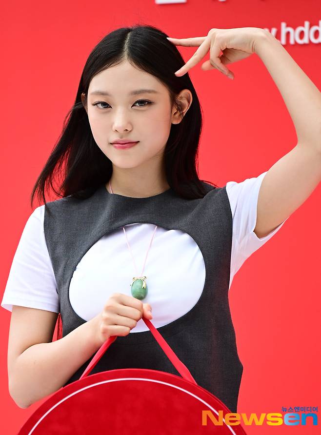 뉴진스(민지, 하니, 다니엘, 해린, 혜인)가 8월1일 오우 서울 중구 현대백화점면세점 동대문점 야외광장에서 열린 한 프로모션 포토월 행사에 참석했다.
