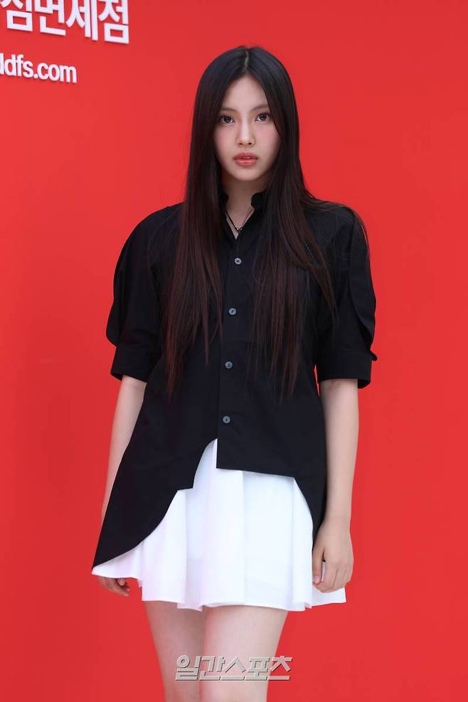 그룹 뉴진스 혜인이 1일 오후 서울 중구 을지로6가에서 열린 한 백화점 프로모션 행사에 참석해 포즈를 취하고 있다.