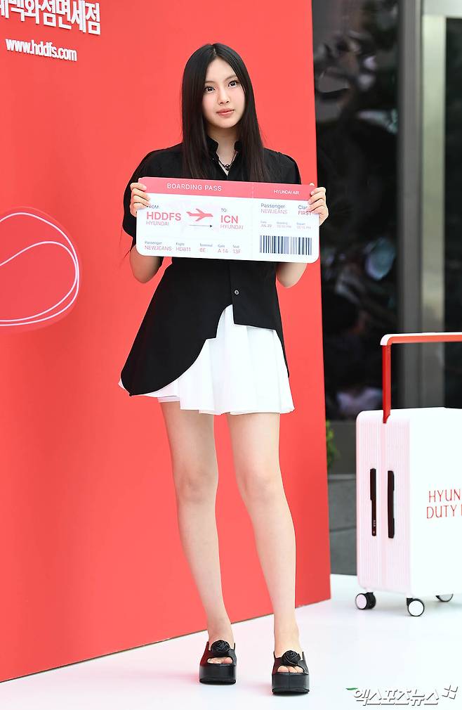 이날 행사에 참석한 그룹 뉴진스(NewJeans) 혜인이 포토타임을 갖고 있다.