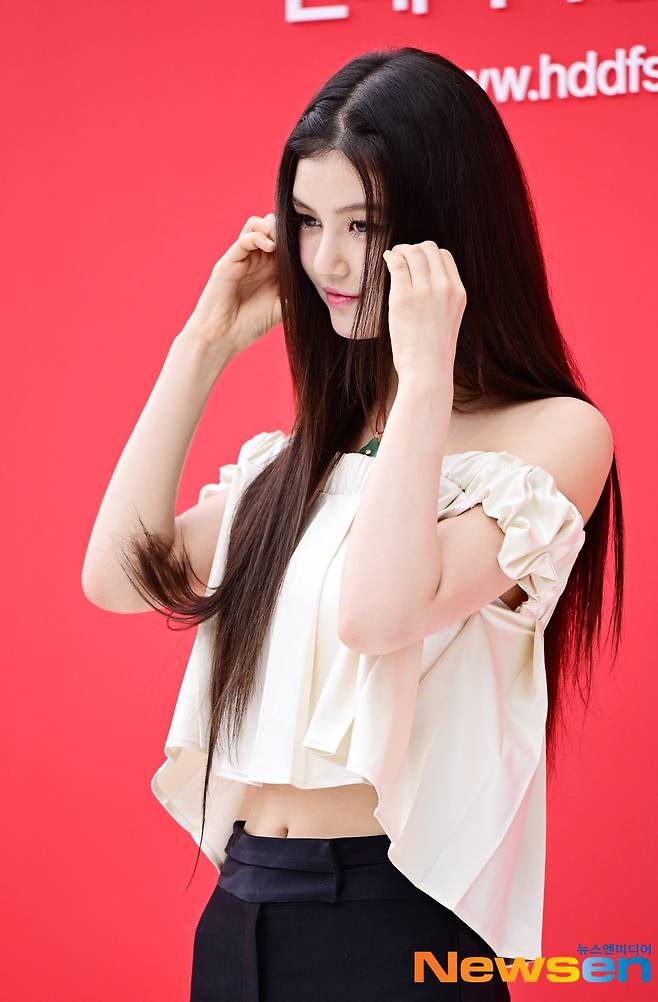 뉴진스(민지, 하니, 다니엘, 해린, 혜인)가 8월1일 오우 서울 중구 현대백화점면세점 동대문점 야외광장에서 열린 한 프로모션 포토월 행사에 참석했다.