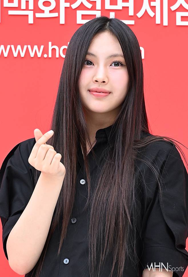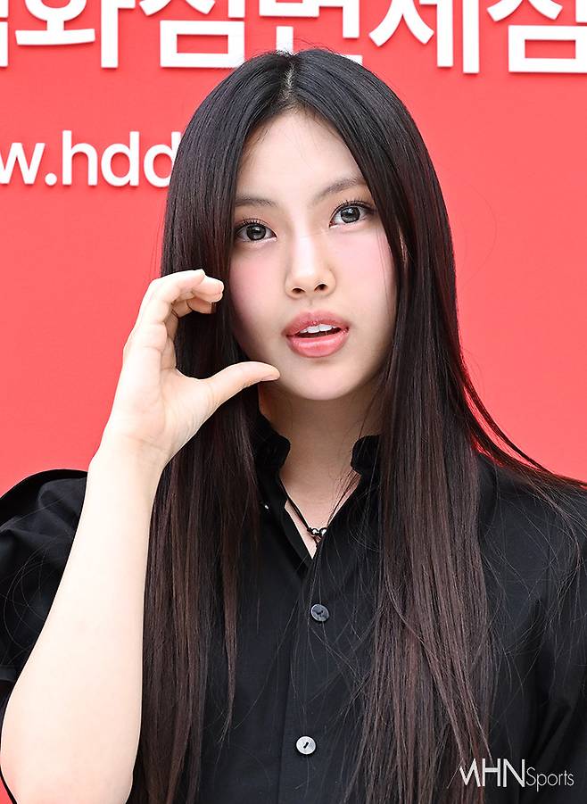 이날 뉴진스 혜인이 포토타임을 갖고 있다.