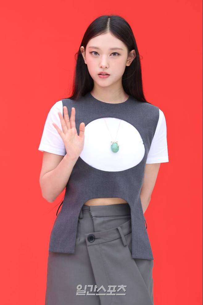 그룹 뉴진스 해린이 1일 오후 서울 중구 을지로6가에서 열린 한 백화점 프로모션 행사에 참석해 포즈를 취하고 있다.