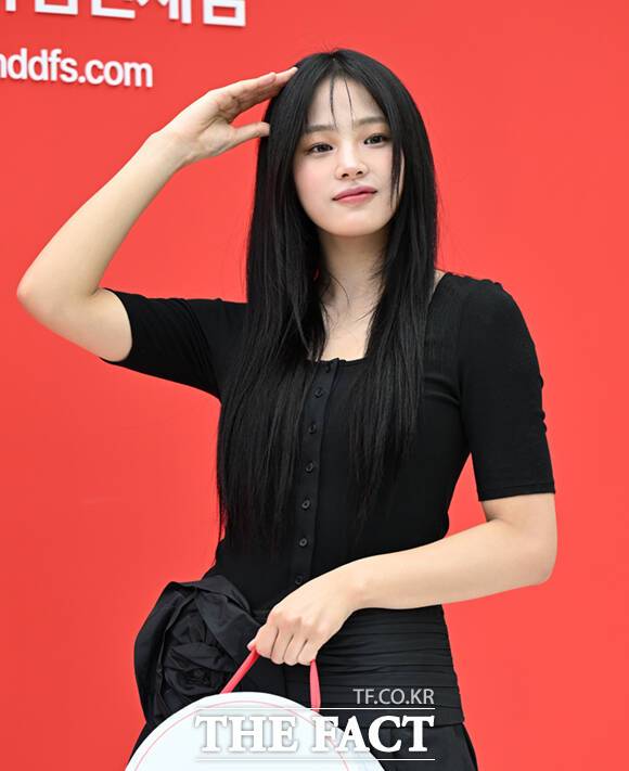 걸그룹 뉴진스 민지가 1일 오후 서울 중구 현대백화점면세점 동대문점에서 열린 '에브리데이 현데이(EVERYDAY HYUNDAY)' 행사에 참석해 포즈를 취하고 있다.
