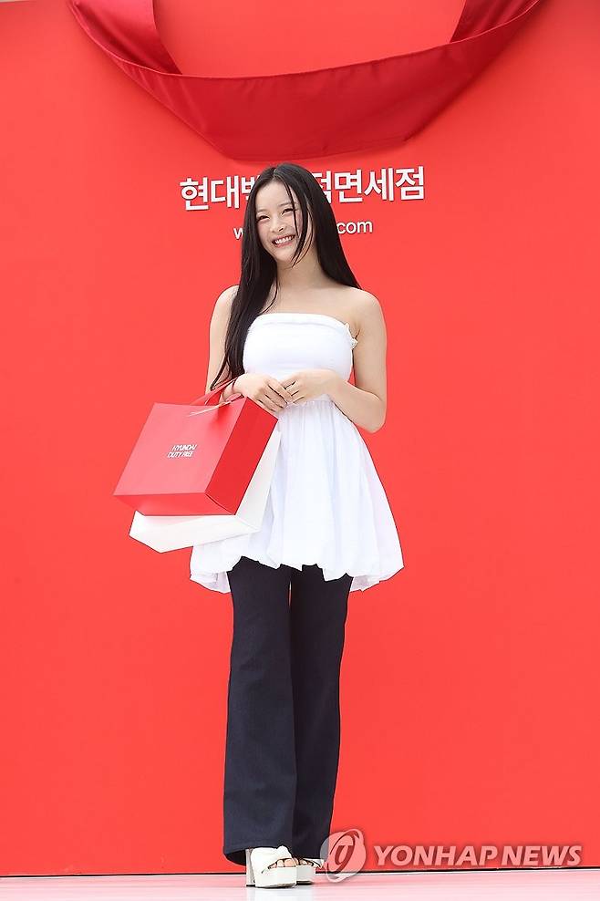 (서울=연합뉴스) 강민지 기자 = 그룹 뉴진스의 하니가 1일 오후 서울 중구 현대백화점 면세점 동대문점에서 열린 '에브리데이 현데이' 프로모션 기념 포토월에서 포즈를 취하고 있다. 2024.8.1