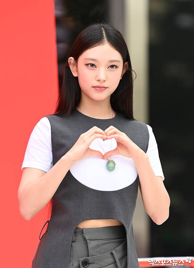이날 행사에 참석한 그룹 뉴진스(NewJeans) 해린이 포토타임을 갖고 있다.