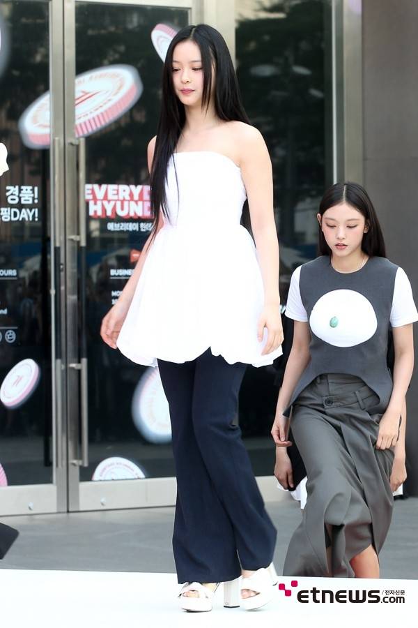 그룹 뉴진스가 1일 서울 중구 현대백화점면세점 동대문점에서 ‘에브리데이 현데이(EVERYDAY HYUNDAY) 뉴진스 방문 기념 포토콜’ 행사 일정에 참석했다.