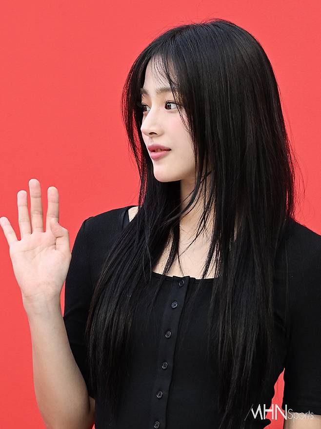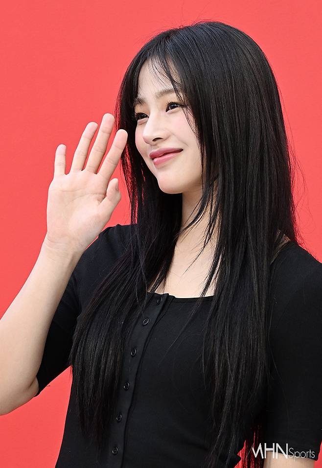 이날 뉴진스 민지가 포토타임을 갖고 있다.