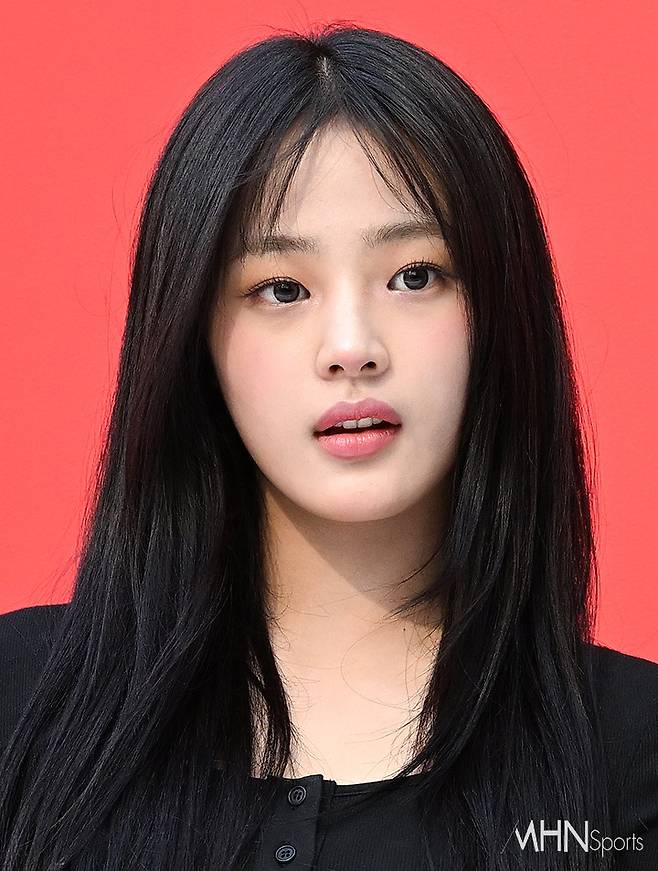 이날 뉴진스 민지가 포토타임을 갖고 있다.