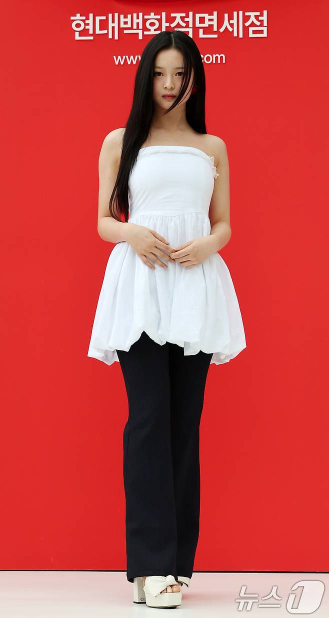 (서울=뉴스1) 김진환 기자 = 걸그룹 뉴진스 하니가 1일 오후 서울 중구 을지로 현대백화점면세점에서 열린 포토행사에 참석해 포즈를 취하고 있다. 2024.8.1/뉴스1