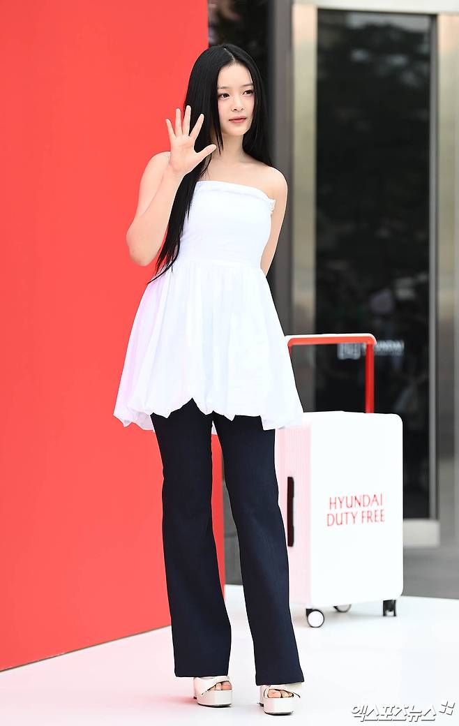 이날 행사에 참석한 그룹 뉴진스(NewJeans) 하니가 포토타임을 갖고 있다.