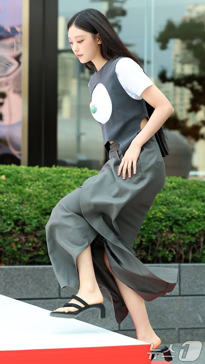 (서울=뉴스1) 김진환 기자 = 걸그룹 뉴진스 해린이 1일 오후 서울 중구 을지로 현대백화점면세점에서 열린 포토행사에 참석하고 있다. 2024.8.1/뉴스1