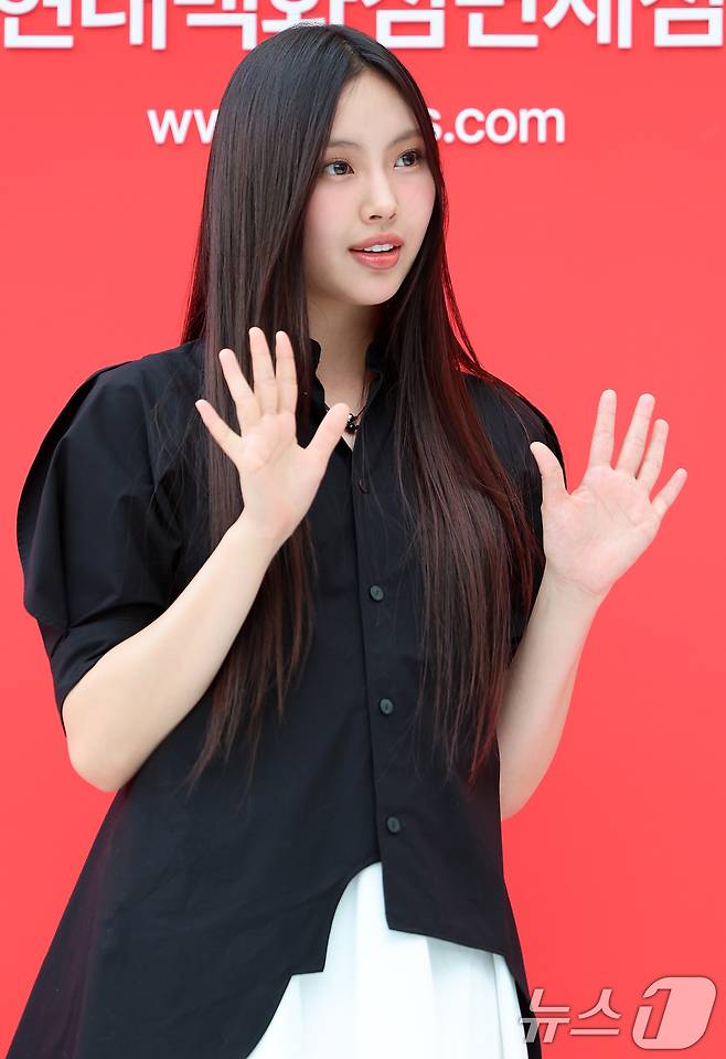 (서울=뉴스1) 김진환 기자 = 걸그룹 뉴진스 혜인이 1일 오후 서울 중구 을지로 현대백화점면세점에서 열린 포토행사에 참석해 포즈를 취하고 있다. 2024.8.1/뉴스1