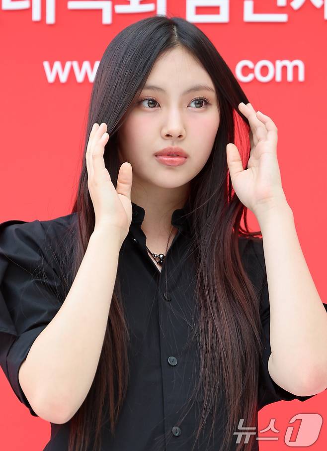 (서울=뉴스1) 김진환 기자 = 걸그룹 뉴진스 혜인이 1일 오후 서울 중구 을지로 현대백화점면세점에서 열린 포토행사에 참석해 포즈를 취하고 있다. 2024.8.1/뉴스1