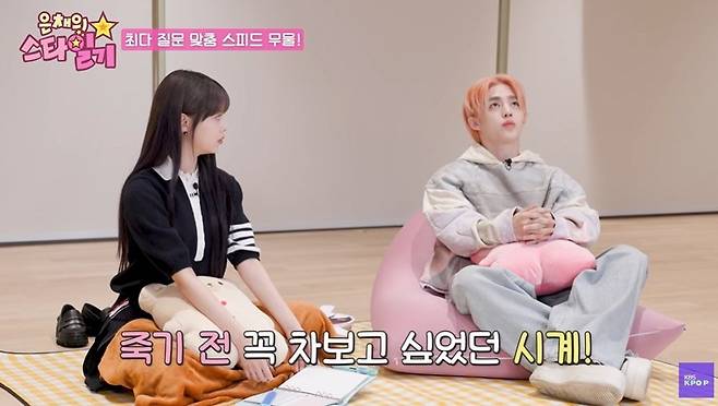 에스쿱스는 옷장에 비니가 40~50개 있다고 밝혔다. 이에 은채는 "항상 하이브에서 마주칠 때마다 비니를 쓰고 계신 것 같다"라고 했다. 최근 소비 중 만족스러운 소비는 시계라고. 에스쿱스는 "어제 샀다. 돈을 벌고 여유가 생기면 죽기 전 한번은 차봐야지 생각했던 시계를 샀다"라고 밝혔다.