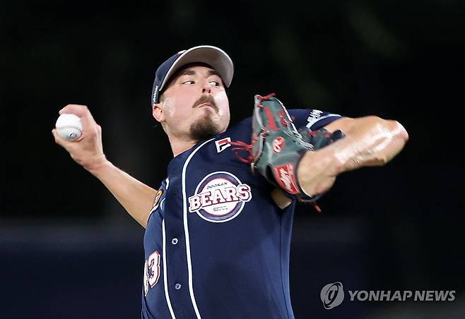 (광주=연합뉴스) 조남수 기자 = 1일 광주기아챔피언스필드에서 열린 프로야구 두산 베어스와 KIA 타이거즈의 경기. 두산 선발투수 발라조빅이 5회에 투구하고 있다. 2024.8.1