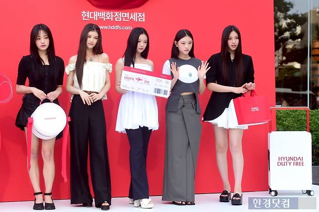 그룹 뉴진스가 1일 오후 서울 중구 현대백화점면세점 동대문점에서 열린 '에브리데이 현데이(EVERYDAY HYUNDAY)' 행사에 참석해 포즈를 취하고 있다.