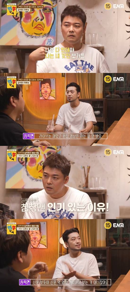 1일 방송된 ENA '현무카세' 4회에서는 '뉴미디어 황제' 곽튜브와 침착맨이 전현무와 김지석의 아지트를 찾았다.
