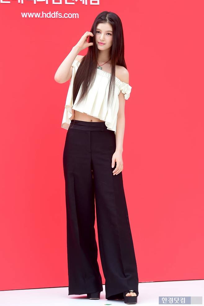 그룹 뉴진스 다니엘이 1일 오후 서울 중구 현대백화점면세점 동대문점에서 열린 '에브리데이 현데이(EVERYDAY HYUNDAY)' 행사에 참석해 포즈를 취하고 있다.