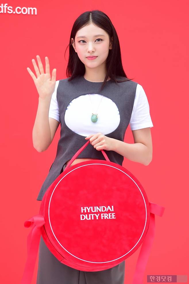 그룹 뉴진스 해린이 1일 오후 서울 중구 현대백화점면세점 동대문점에서 열린 '에브리데이 현데이(EVERYDAY HYUNDAY)' 행사에 참석해 포즈를 취하고 있다.