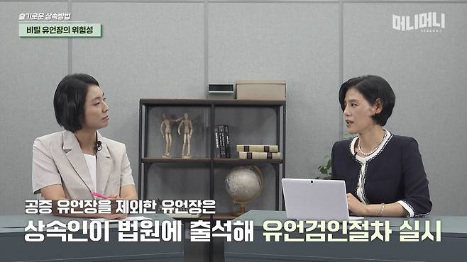 2일 오전 6시 조선일보 경제 유튜브 채널 ‘조선일보 머니’에 업로드 된 ‘머니머니 시즌2′는 유언과 유언 공증, 유언대용신탁이라는 세 가지 상속 방식을 비교분석했다. 내게 가장 적합한 상속 준비 방식이 무엇인지 고민하는 독자들을 위한 컨텐츠다. 상속 컨설팅 경험이 풍부한 하나은행 리빙트러스트센터의 김하정 센터장이 설명을 맡았다.