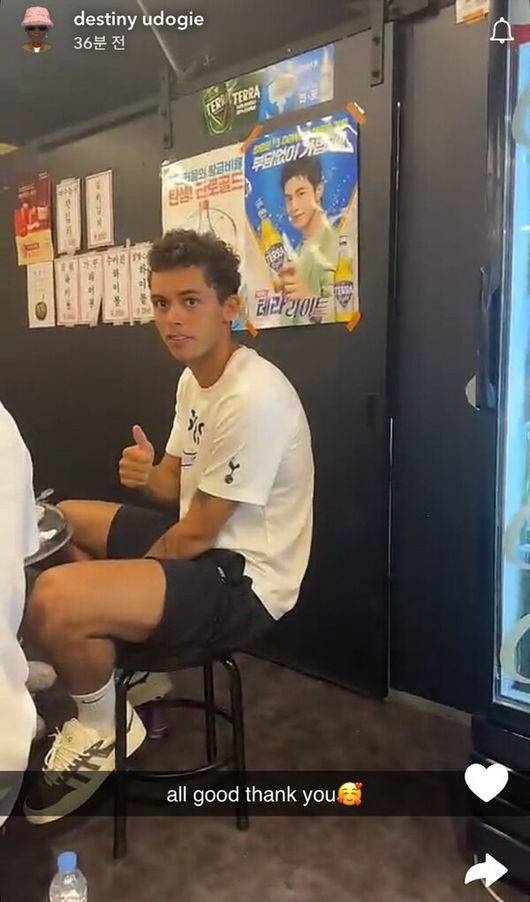데스티니 우도기 등 토트넘 선수들은 지난 1일 개인 채널을 통해 고깃집에서 즐기는 모습을 전했다.