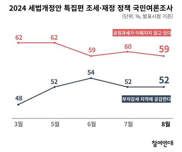 2024년 세법개정안 국민여론조사 결과를 비롯하여 윤석열 정부의 감세 등 조세·재정 정책이 '공정과세'가 아니며 '부자감세'에 가깝다는 비판 여론이 지속적으로 확인되고 있습니다.