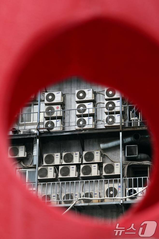 (서울=뉴스1) 신웅수 기자 = 전국적인 폭염이 이어지고 있는 2일 서울의 한 건물 외벽에 설치된 에어컨 실외기가 빠르게 돌아가고 있다.