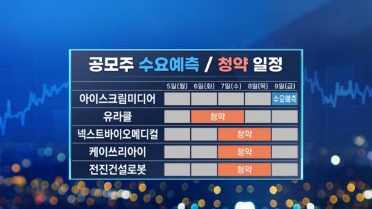 <캐스터> 네, 우선 AI 에듀테크 기업 아이스크림미디어에서 9일부터 수요예측에 들어가고요.