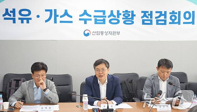 (서울=뉴스1) = 윤창현 산업통상자원부 자원산업정책국장이 2일 서울 영등포구 대한석유협회에서 한국석유공사, 한국가스공사, 국제금융센터, 한국이스라엘학회, SK에너지, GS칼텍스, S-OIL, 현대오일뱅크, 대한석유협회 등 관련 기관 및 업계 관계자가 참석한 가운데 ‘하마스 수장 피살에 따른 중동정세 불안정성 심화로 석유·가스 수급 및 가격 영향과 비상대응태세 등을 긴급 점검하기 위해 열린 '석유·가스 수급 및 가격 상황 긴급 점검회의'를 주재하고 있다. (산업통상자원부 제공) 2024.8.2/뉴스1
