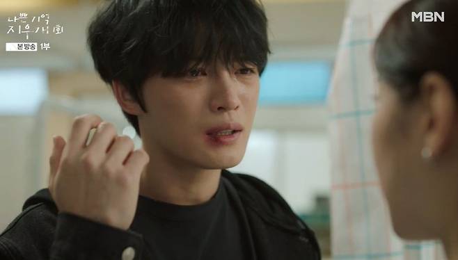 2일 첫 방송된 MBN 금토드라마 '나쁜 기억 지우개' 1회에서는 이군(김재중 분)의 고통을 알게 된 경주연(진세연)의 모습이 그려졌다.