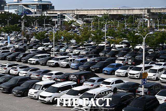[더팩트ㅣ인천국제공항=박헌우 기자] 본격적인 여름 휴가철을 맞은 3일 오전, 인천국제공항 주차장이 주차된 차량들로 가득 차 있다.