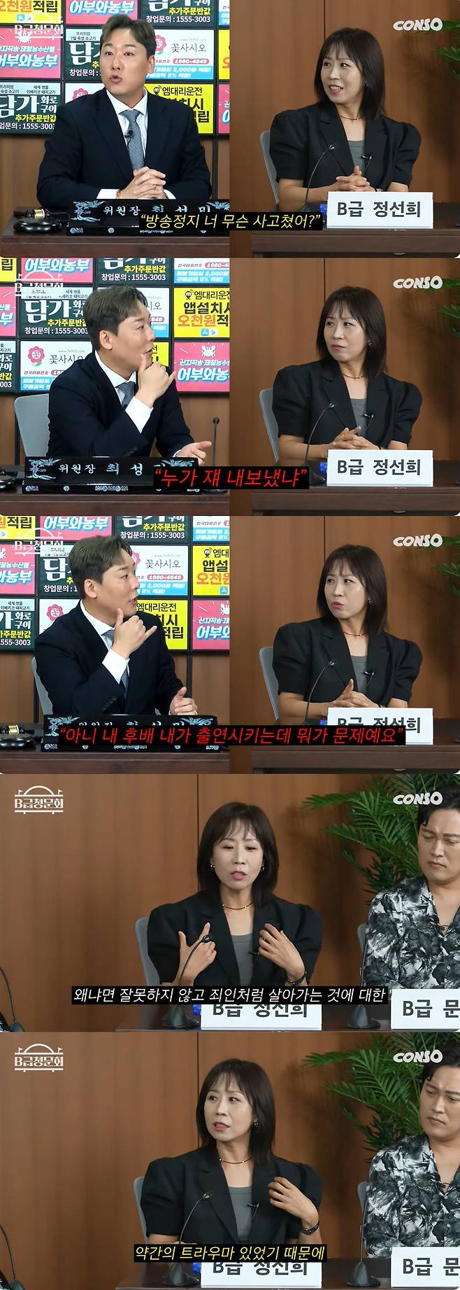 2일 유튜브 콘텐츠 'B급 청문회 시즌2'에서는 개그맨 정선희, 문천식, 조현민이 게스트로 출연했다.