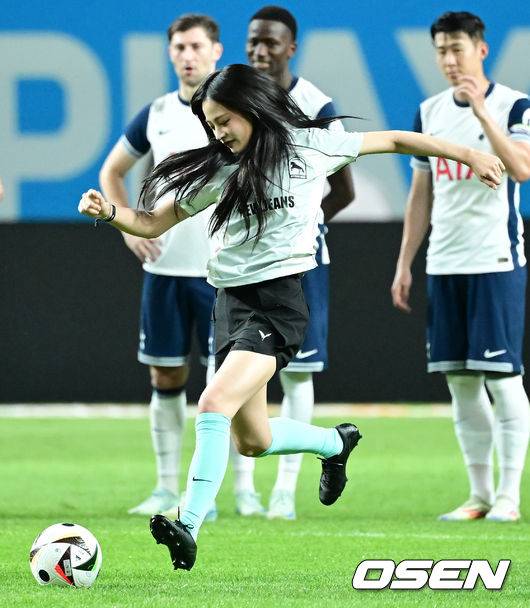 경기 시작에 앞서 뉴진스 민지가 시축을 하고 있다. 2024.08.03 / ksl0919@osen.co.kr