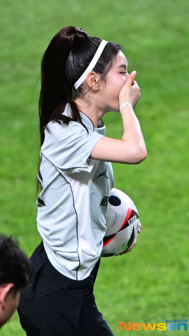 뉴진스 다니엘, 축구팬 환호에 입틀막 감동[포토엔HD]