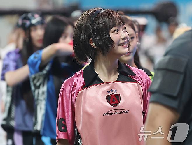 (서울=뉴스1) 김진환 기자 = 걸그룹 뉴진스 하니가 3일 오후 서울 마포구 상암동 서울월드컵경기장에서 열린 쿠팡플레이 시리즈 잉글랜드 프리미어리그 토트넘 홋스퍼와 독일 분데스리가 바이에른 뮌헨의 경기에서 축하공연을 마친 뒤 그라운드를 빠져나가고 있다. 2024.8.3/뉴스1