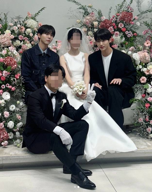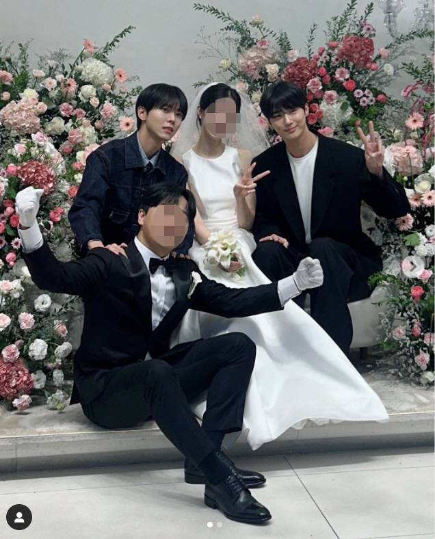 사진 속에는 신랑 신부 옆에서 미소를 짓고 있는 주우재 뿐만 아니라 절친 변우석도 함께해 눈길을 끌었다.