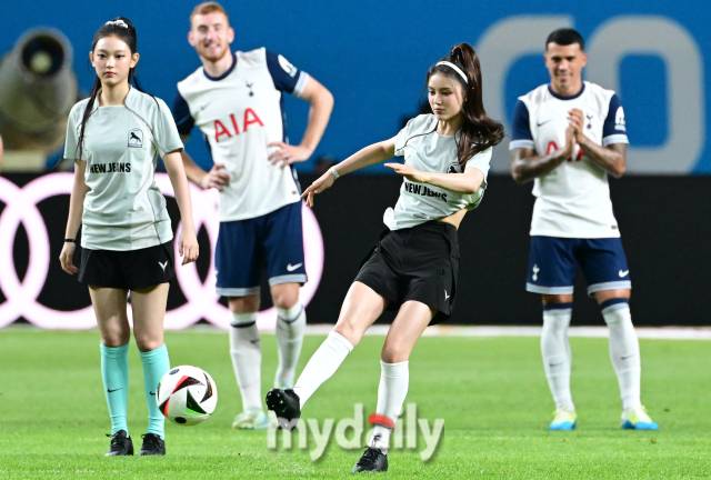 [마이데일리 = 유진형 기자] 3일 서울월드컵경기장에서 '쿠팡플레이시리즈 2경기, FC 바이에른 뮌헨과 토트넘 홋스퍼'의 경기가 열렸다. 경기 전 뉴진스 다니엘이 시축하고 있다.